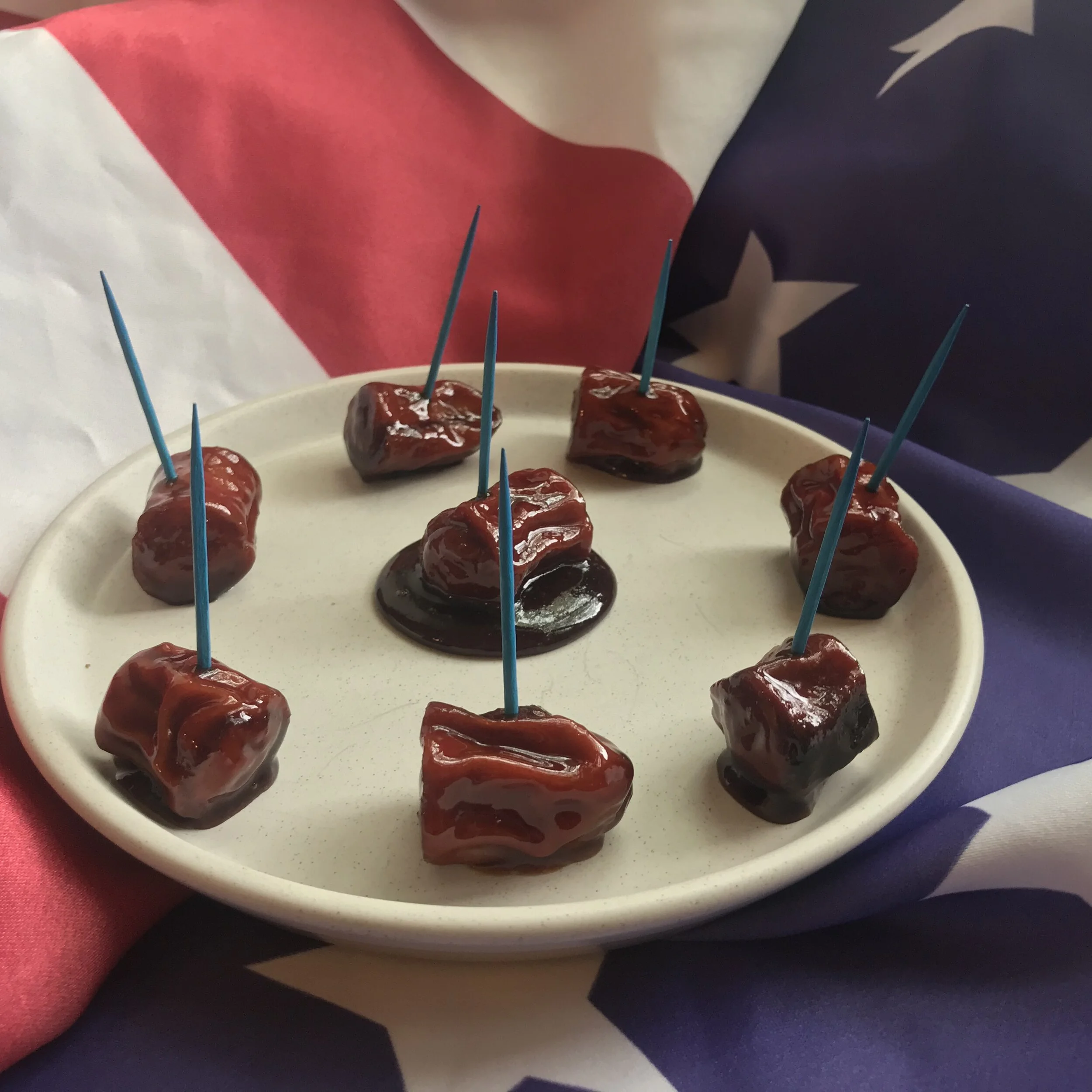 Stick ‘em and serve ‘em, simple as that! If you’re as patriotic as I am at Cookin’ with Congress, you can buy blue toothpicks here.