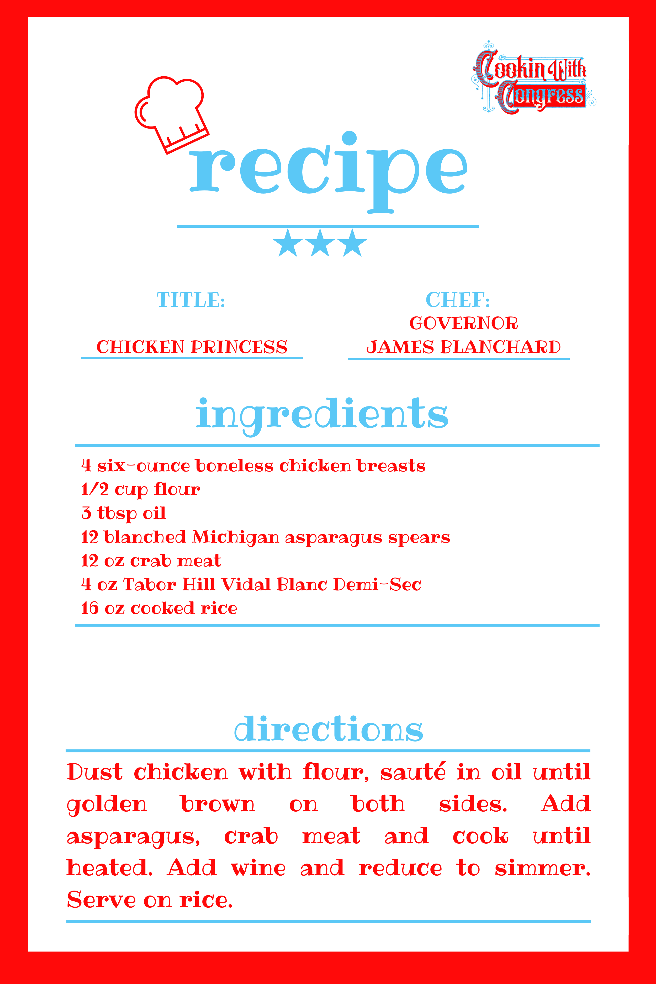 Some dishes I start making, and there’s a bit of a question as to how they’ll turn out. Sometimes mid-way through the process, someone enters the kitchen and has to leave our house because a pungent smell is permeating and destroying their sense of self. Sometimes the dish comes out looking a little less beautiful than implied by its beautiful name. Sometimes it’s all three — Governor James Blanchard’s Chicken Princess.