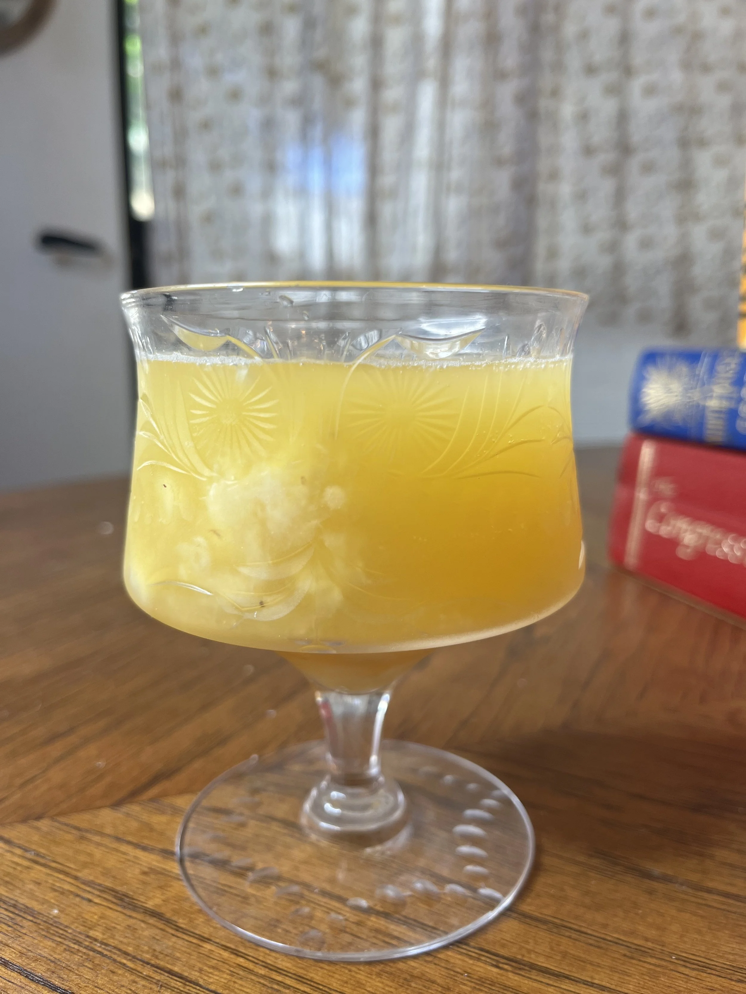 Voila! If you want to actually watch me attempt to drink it, go to the Cookin’ with Congress Instagram or TikTok OR…YouTube! You may not know this about me, but I spent six years working at a distillery and several more being an amateur bartender at home. I built a cocktail program, led 450 in-person cocktail classes, invented drinks, and just generally had a fantastic time.