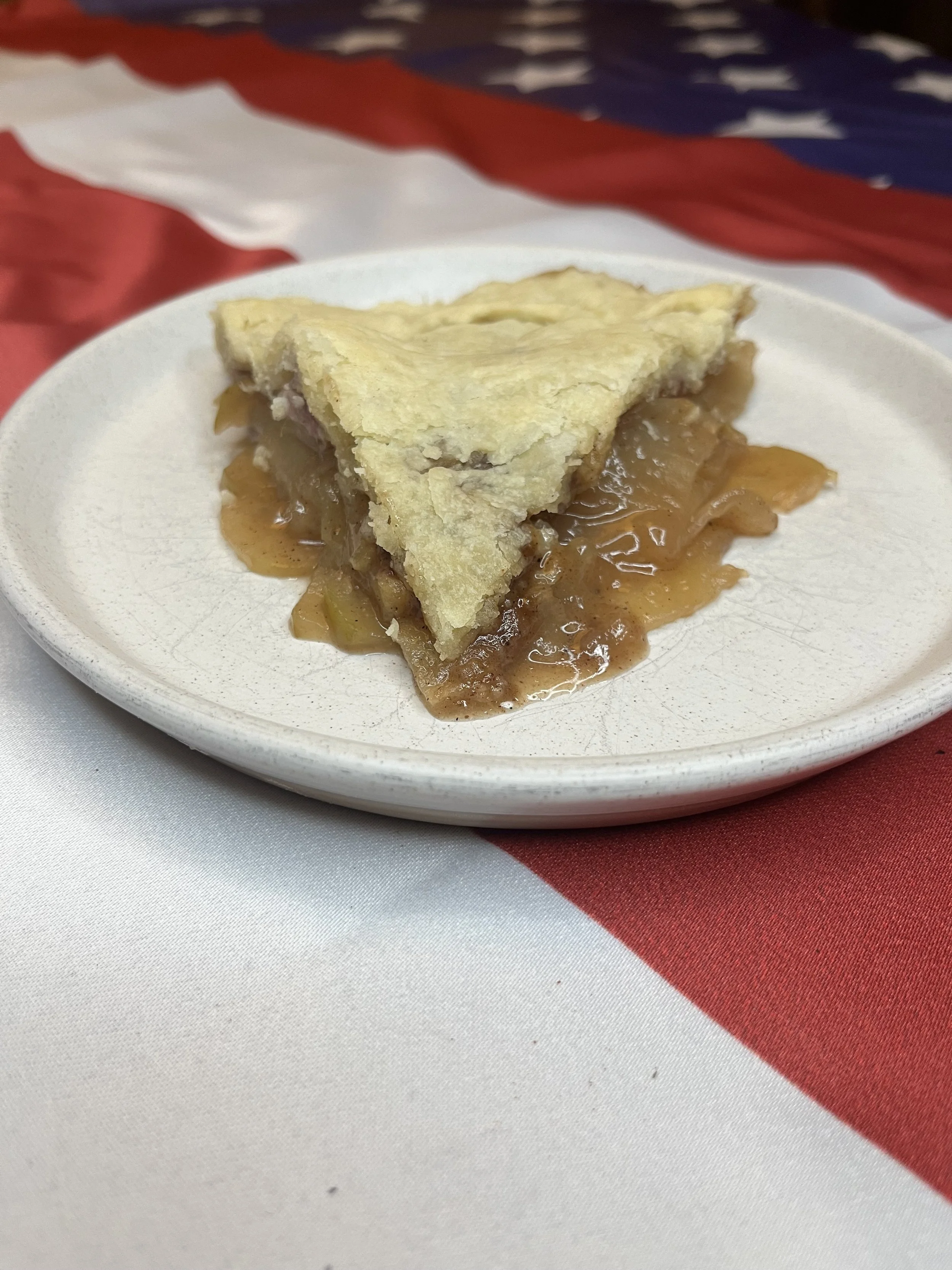 Voila! If you want to actually watch me attempt to eat it, go to the CwC Instagram or TikTok. I know how to make a fine pie crust, let me just say. This wasn’t my best due to the build of the pan (cast iron skillet), but visually, it’s probably accurate to the 1920s. The smell is glorious — baked apples, nutmeg and a touch of bacon — and as I smelled it, I started to think this recipe might just be a success. Much better than the last meat dessert I made.