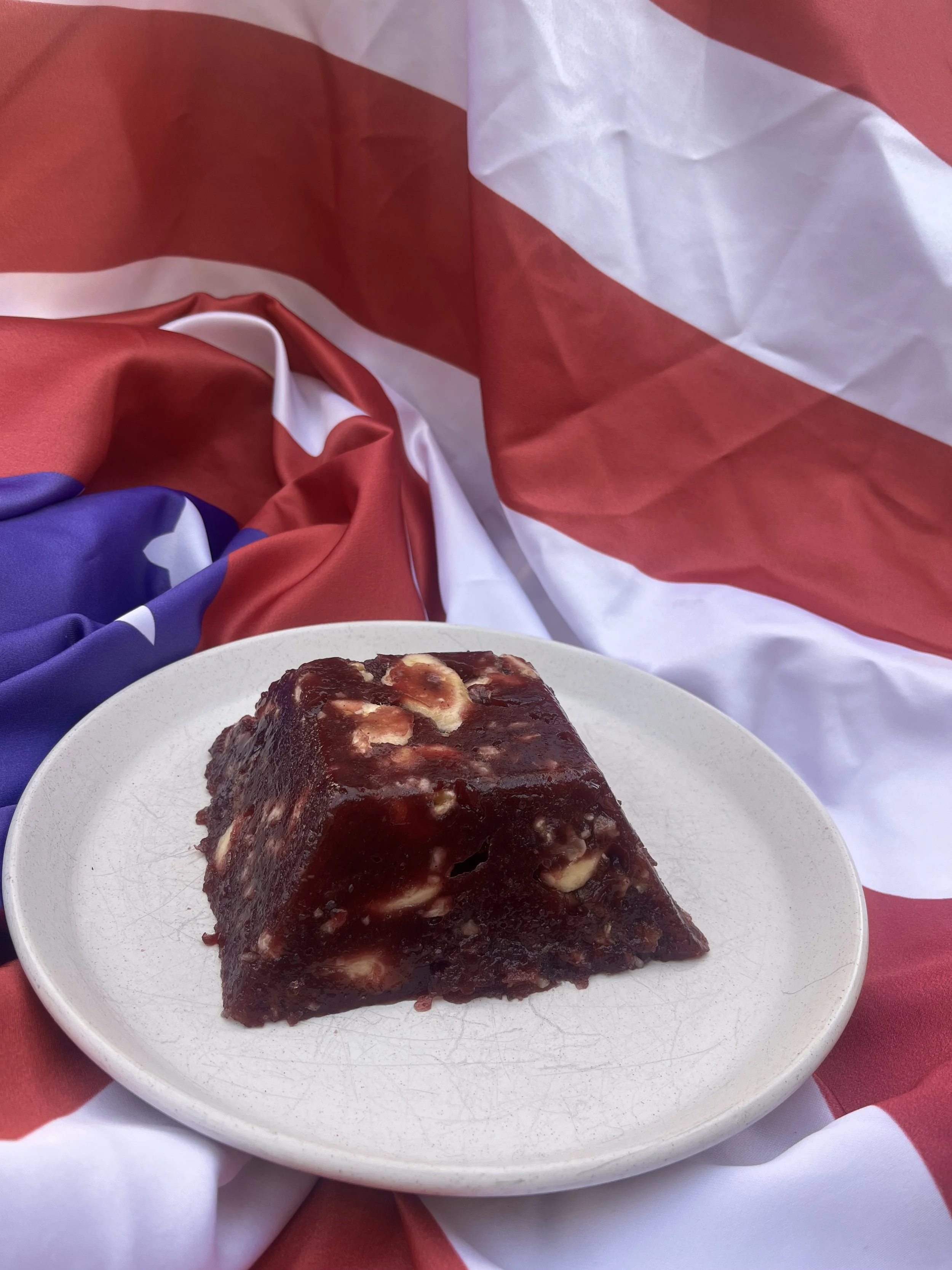 Voila! If you want to actually watch me attempt to eat it, go to the Cookin’ with Congress Instagram or TikTok and now, YouTube Shorts. The dish has a visceral look, sure, but it’s not the most violent looking thing i’ve ever made on here (that honor belongs to Coke Salad). Part of me wishes the bananas were sliced up a bit smaller, but maybe this mosaic effect works for some folks. What an adorable little hemo-pyramid.