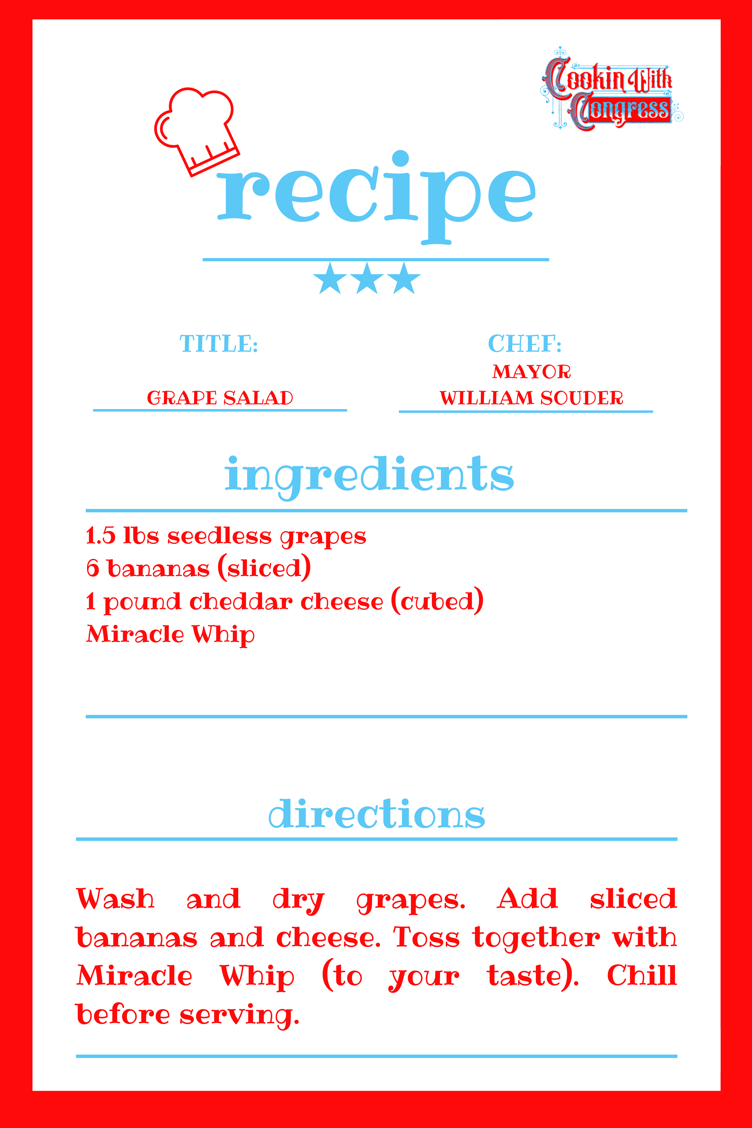 Okay, it’s been a whirlwind over here at Cookin’ with Congress HQ, and not just because my recent Eat Like a President series was covered on Daily Mail. Actually, HQ has moved (we moved to a new house), which is why this post is more than 10 days later than I intended. But let me assure you, it is worth it. The wait is worth it…for grape salad.