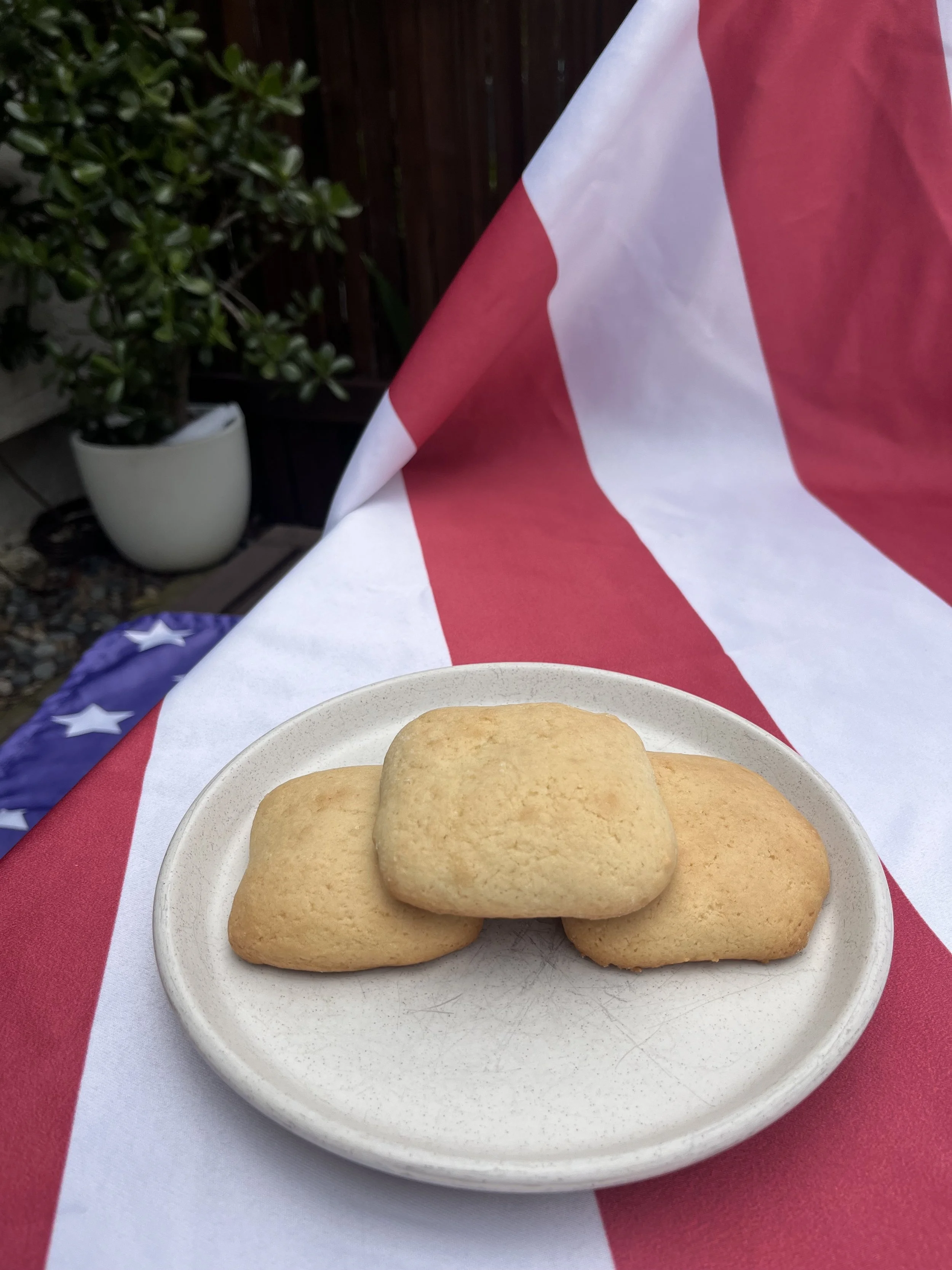 Voila! If you want to actually watch me attempt to eat it, go to the Cookin’ with Congress Instagram or TikTok. They don’t look dangerous, do they? They don’t look like much at all, in fact. Just pillowy, square-adjacent shapes without any discernible smell or texture. Bland. These crackers look entirely bland. Icing or sugaring is welcomed, but I wanted to try the undecorated version first to get the true flavor of fire extinguisher.