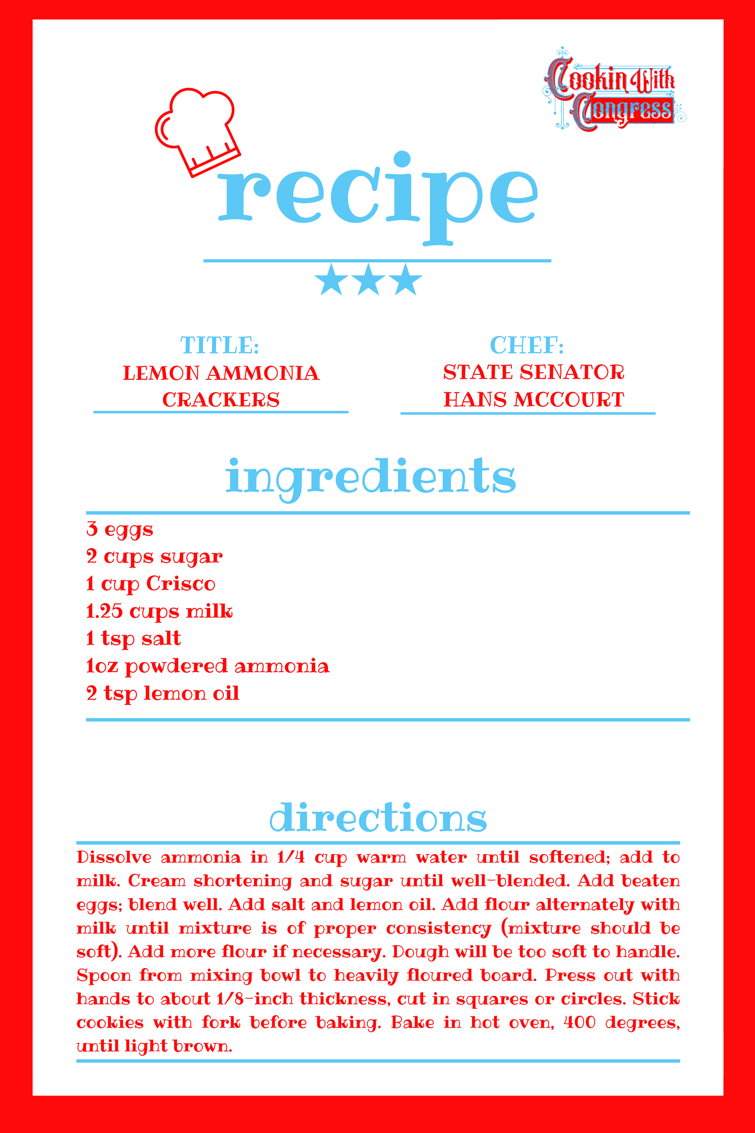State Senator Hans McCourt's "Lemon Ammonia Crackers"
