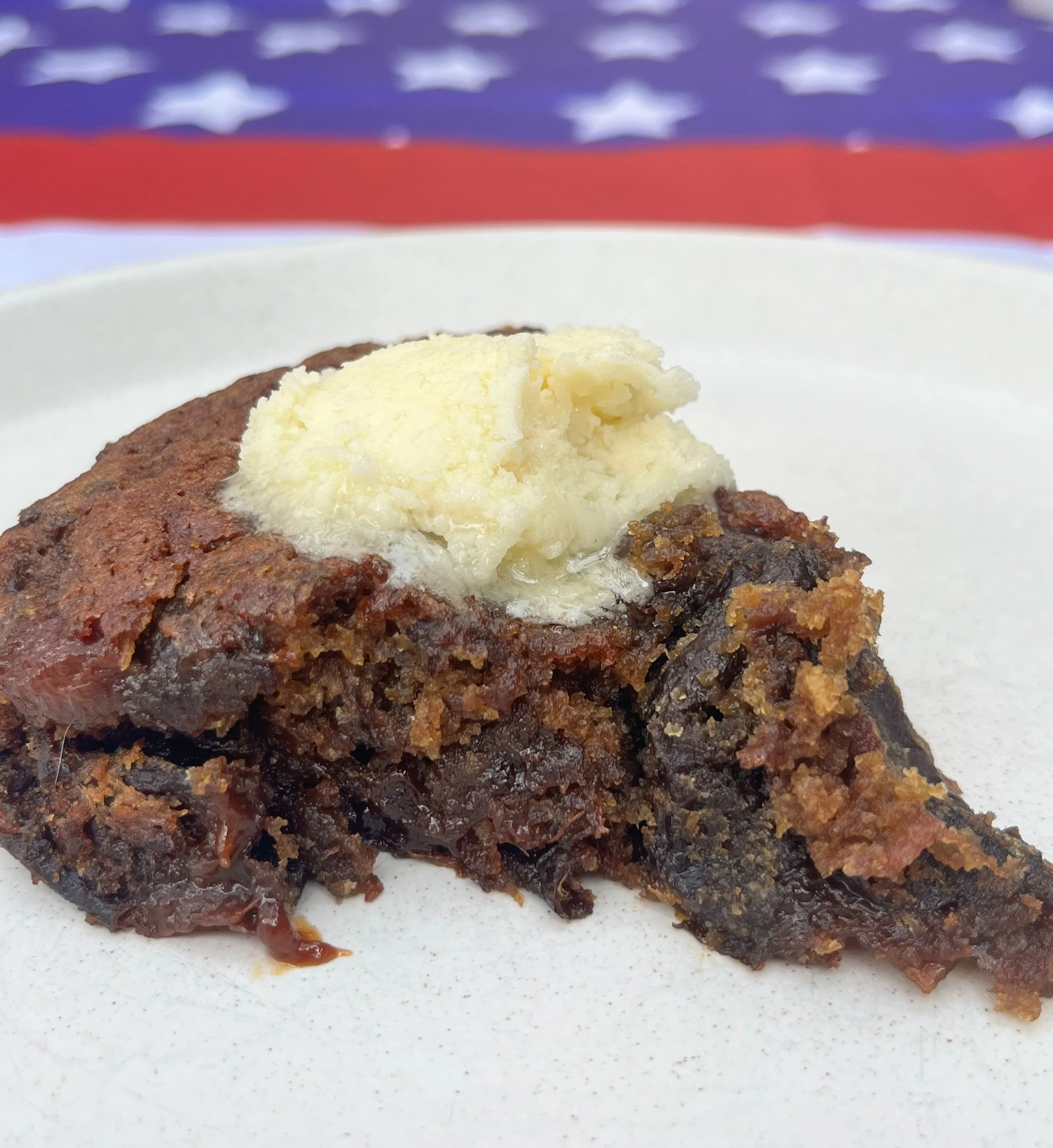 Voila! If you want to actually watch me eat it, go to the CwC Instagram or TikTok. It came out smelling nice — holiday spices from the cooked prunes, probably — and it browned nicely on top. However, cutting into it, it didn’t hold quite as well, and the sopping wet prunes came in small chunks. The hard sauce melted after a time, creating a buttery drizzle that reminded me of classic diner pancakes. All in all, a figgy pudding, sort of. But with more laxative consequences.