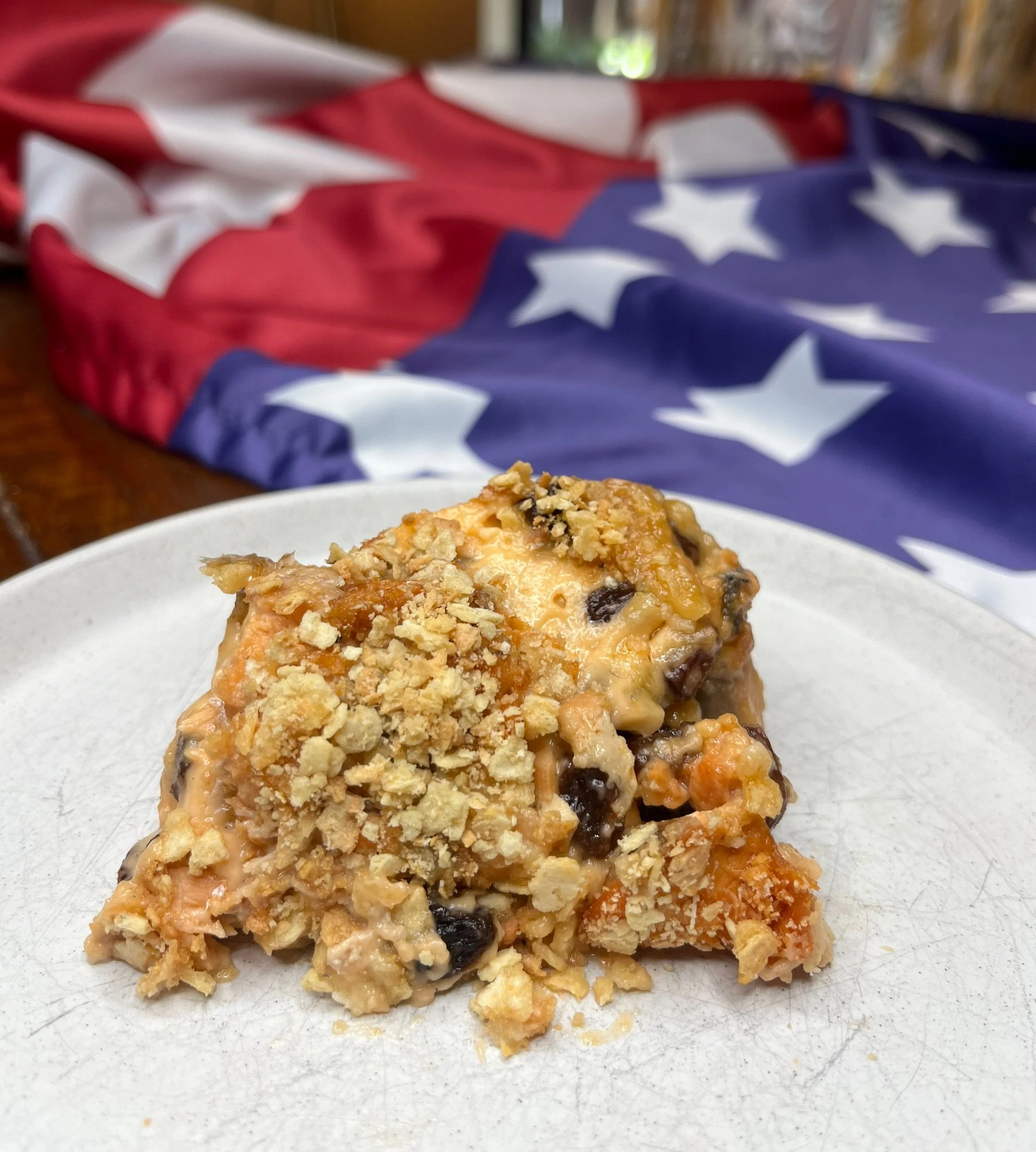 Voila! If you want to actually watch me attempt to eat it, go to the Cookin’ with Congress Instagram or TikTok. As with other casseroles, individual slices don’t exactly exude photogenic qualities — it’s rough, multi-colored, sloppy, and impossible to dissect in terms of ingredients. Yet, the house smelled good when I made it, and the pleasant warm orange looked like buffalo chicken sauce when I pulled it from the oven. More appetizing than Steve Largent’s.