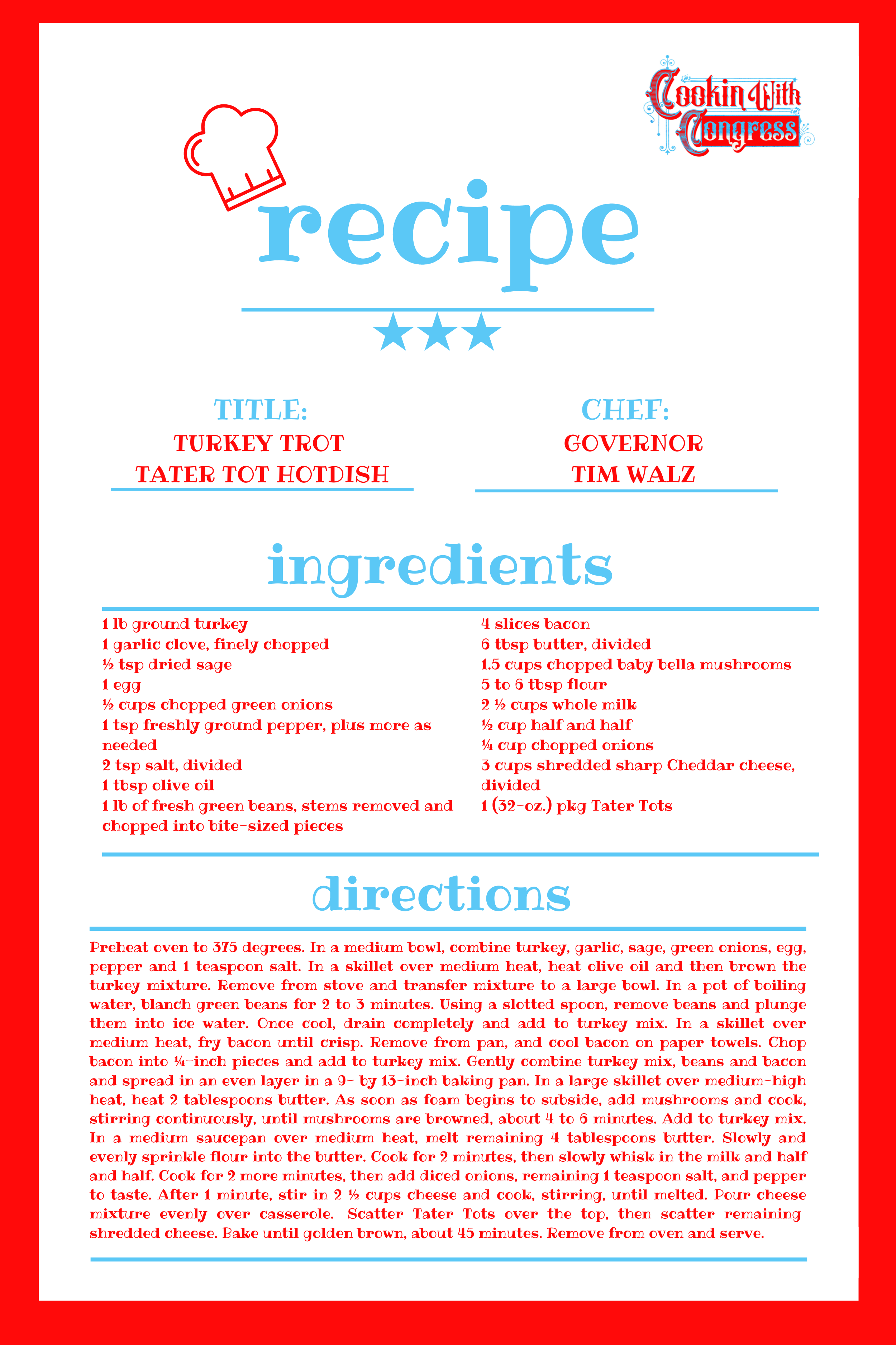 Governor Tim Walz's "Turkey Trot Tater Tot Hotdish"